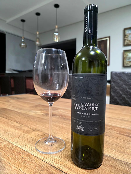 Taniinos marcantes, nuance de pimenta e retrogosto de chocolate. |